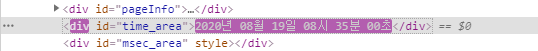 <div id="time_area">2020년 08월 19일 08시 34분 10초</div>