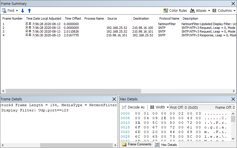 Microsoft Network Monitor를 이용해 utck의 패킷 내용 확인