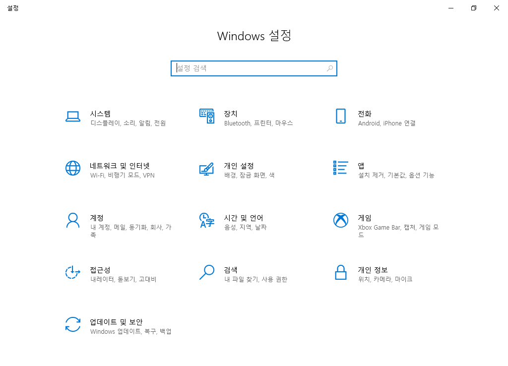 먼저 아래와 같이 윈도우 설정을 연다. 시작 메뉴에서 "설정"이라고 검색하면 바로 나온다.