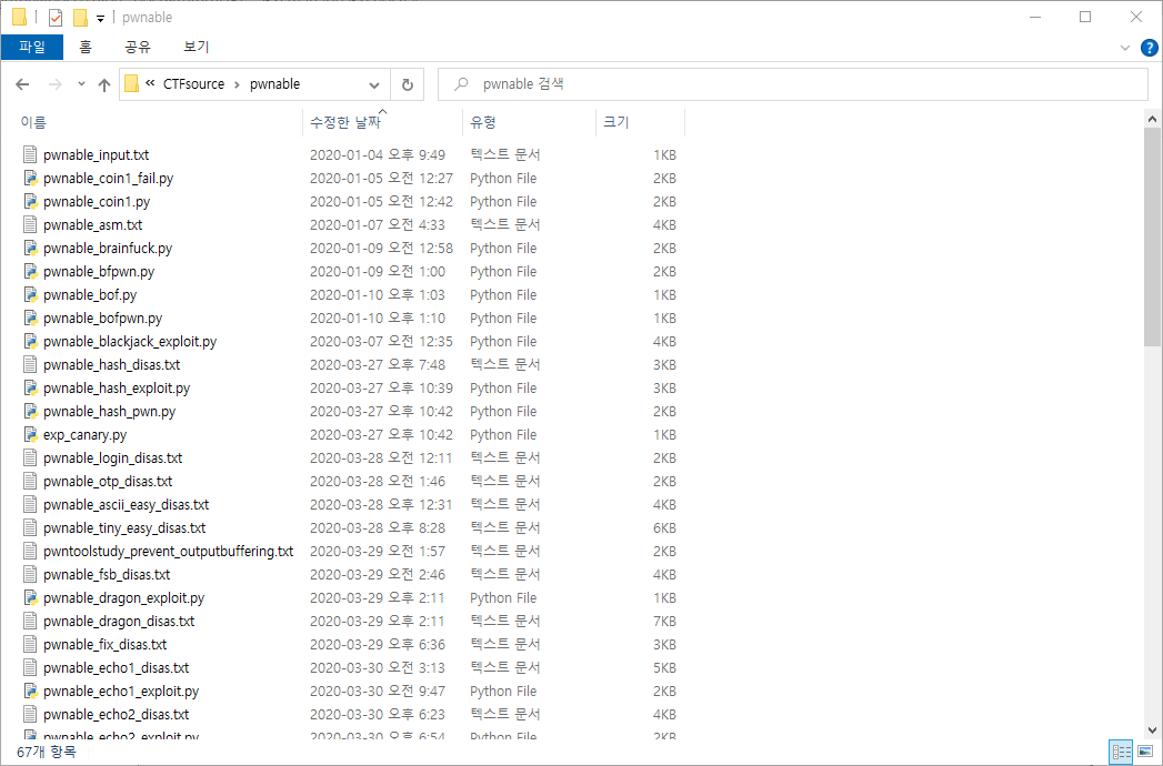 파일 수정시간으로 보면 2020년 1월에 시작한 걸로 보인다. 아마 겨울방학에 심심해서 시작한 것 같다. 처음에 친구가 추천해주어서 시작했었는데 어려운 걸 풀어내고 느끼는 성취감 같은 게 있어서 계속하다 보니 끝까지 할 수 있었던 것 같다.